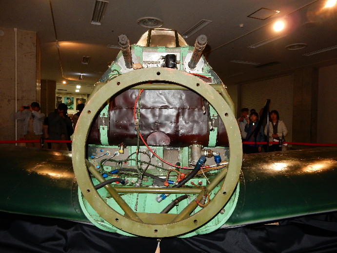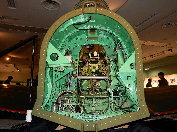 世界で今飛べる五機の中の一機のゼロ戦、一万機以上作って飛べるのは日本に一機も無し。アメリカから日本に出荷させるのに武器の輸出に当たると出荷止め、なんとか日本に運んだら、これまた武器の輸入になると陸揚げ禁止となったそうな!そして日本ではゼロ戦を操縦できるパイロットは一人もいないとのこと。まあ、それは当然のことだけど。このように中を見られるのは最初で最後とのこと。技術屋から見ると、「う~ん、そういう設計か!」と驚く。