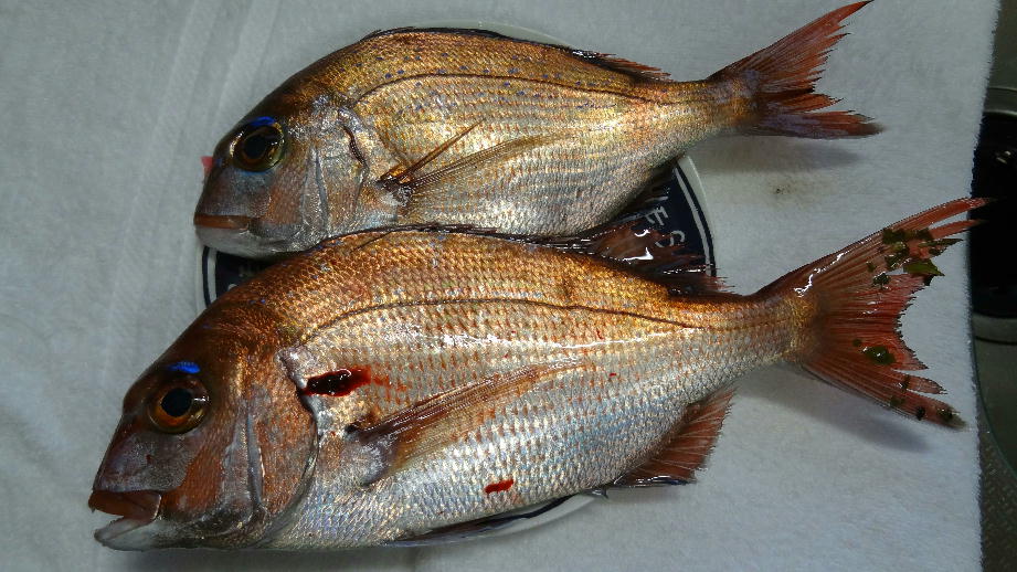 知り合いが獲りたての鯛を持ってきた。今夜は鯛の塩焼き?だな。
