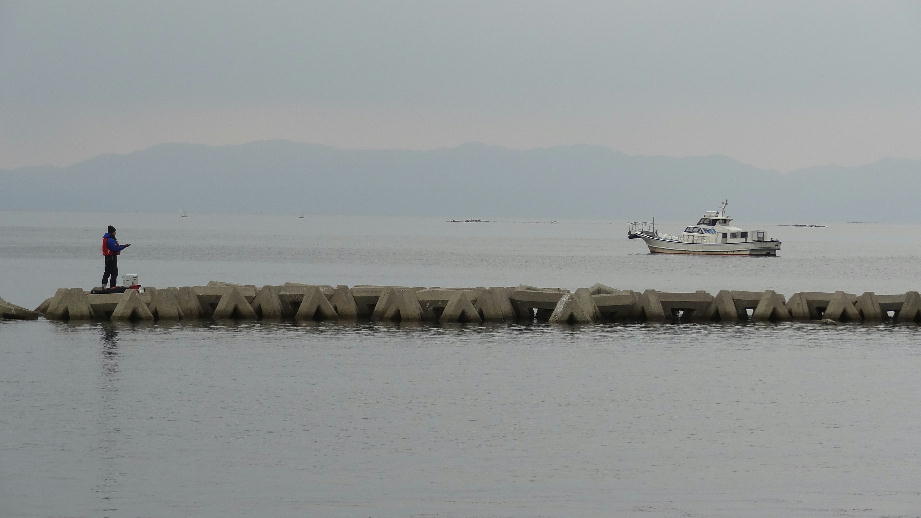 私の村の沖合いでおかずを釣っている?極楽釣り人だな。ここは、釣り雑誌に釣りの隠れた穴場として紹介されて有名らしい。