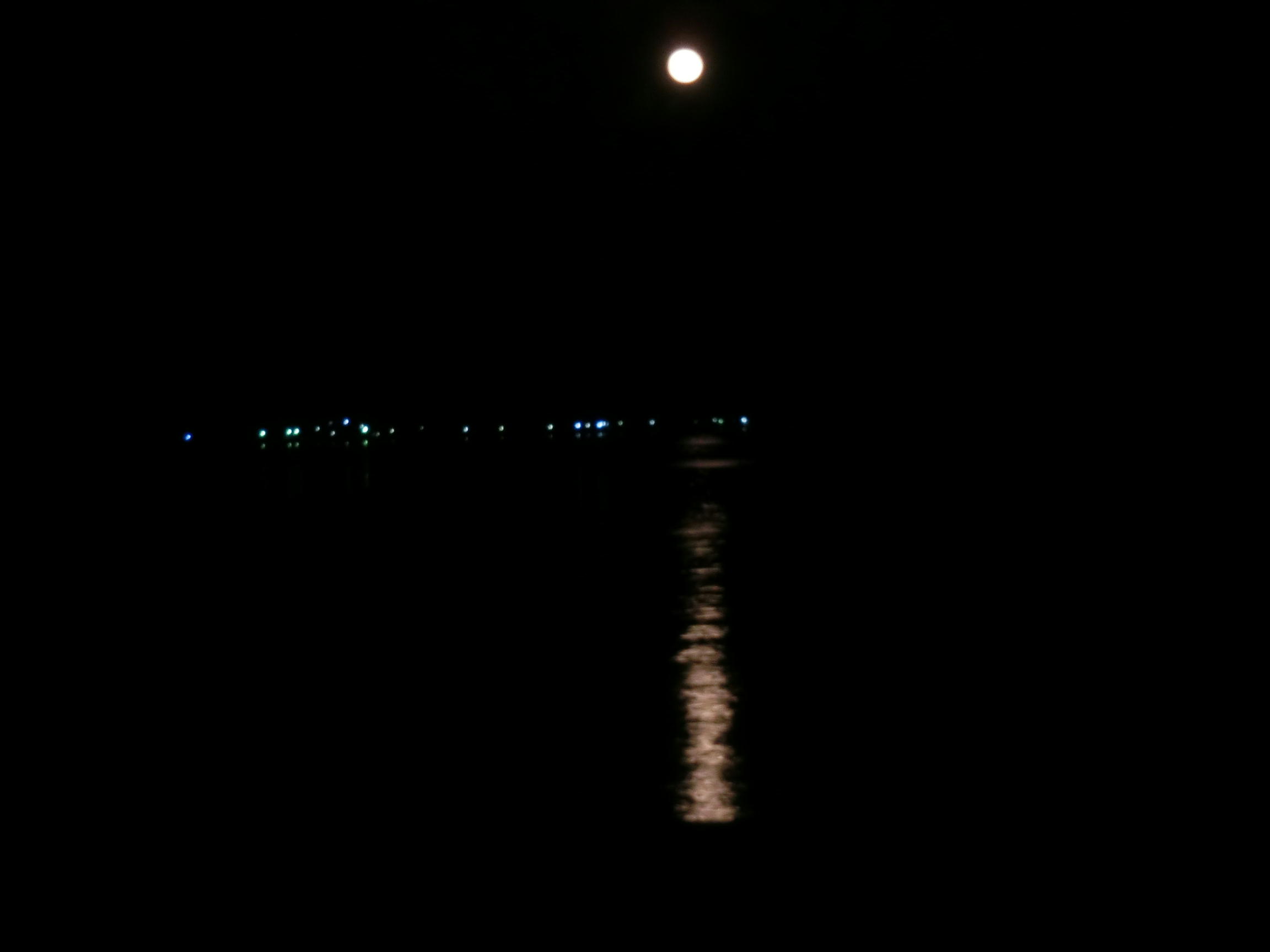 16日の夜8時頃の浜で見たオレンジ色の十六夜の月。今年は8月15日が十五夜だった。写真では分からないけどオレンジ色の月は珍しい。
