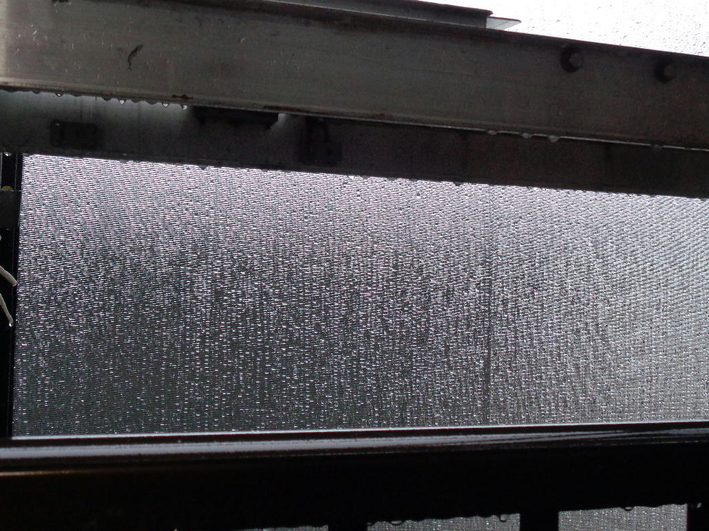 昼現在、雨はよく降っているけど、風は大したことないな。九月の終わりからマンションの大規模修理が始まっていて、足場を組んでいてそれに網を張っているので、マンションの窓に雨や風が当たらない。網目に雨が付いて風を防いでいる。