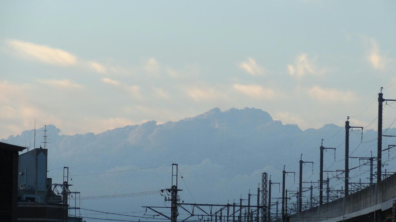 こんな雲、始めて見た。地上からもくもくと巨大山脈連峰のような雲。もう少し早い時間だと雲の上の部分が太陽に照らされて白いヒマラヤの雪山連山のように見えた。陸の上にどうしてこんな雲が出来るのだろう?埼京線の電車の窓から眺めていてビックリした。電車を降りて駅の外から撮った。もう20~30分早ければまるで雪に覆われたヒマラヤ山脈ごとき素晴らしい雲が撮れたのだけれど。