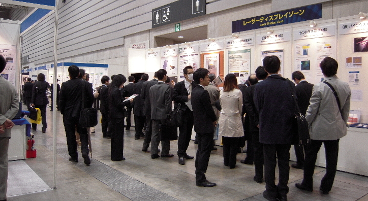 今週の水曜から金曜まで横浜”みなとみらい”で光技術の展示会に最も安いブースに参加した。なんと!周りはほとんど一流企業だった!そして私のブースの両隣は人だかりが出来て私の会社はその中に埋もれてしまった!(右の写真の真ん中の人のいないブースが私の会社のブース)「おい!おい!一流企業が俺レベルの企業のレベルに落ちてくるなよ~!」と何度も冗談で大きな声で言った。他の人は笑っていた。で、結局、新しい客を捕まえることが出来なかったが隣の会社や研究所の人と親しくなって得をしたかも?それにしても隣が私の大事な顧客でもある産業技術総合研究所と肩を並べるとは思わなかった。今回は製品とカタログを置いていただけで接客のフォローはほとんどしなかった。必要な人は後から電話やメイルで連絡してくるだろうからということで、だんだん手抜きになってきている。カタログもいつの間にか人が持っていってそこそこ無くなっていた。私の会社の製品のカタログだけを持って歩いている人もいた。ライバル会社の情報収集だったのかな?まあ、展示会は新しい顧客を見つけるのがメインの目的ではあるけれど、既存の顧客と打ち合わせをする機会でもあるし、「あ~、毎年新しい技術を開発してやっているな」と顧客が安心する機会でもある。