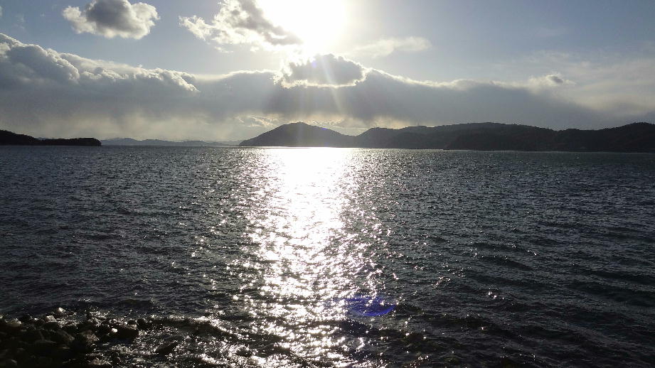 下の写真1枚は私のご先祖様がかつて住んでいた集落の入り口当たりから撮ったもの。もう一枚はその集落の下の道路から西の方向の海に向かって撮ったものです。