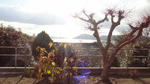 その庭から見た海の写真(その宗教団体によって建て直しされ整備されている。)