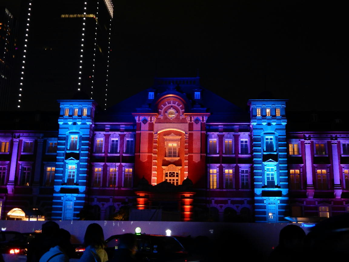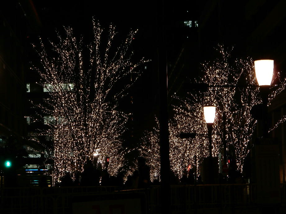 大徳寺さんの書道展を見た後の食事、そして大手町のライトアップ散歩。