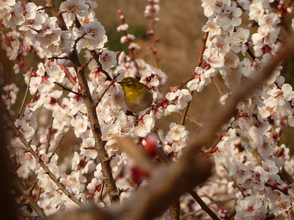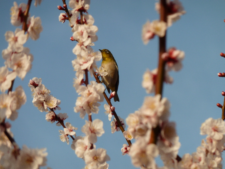 私は連休の三日間、帰省しました。美味しい魚と野菜を食べて良い休日になりました。明日からは逃げるわけにはいかない仕事が待っています。田舎に帰ったら梅が満開でした。こんな梅の花、見たことがないくらいでした。メジロが5羽も10羽も梅の花にたかって蜜を吸っていました。