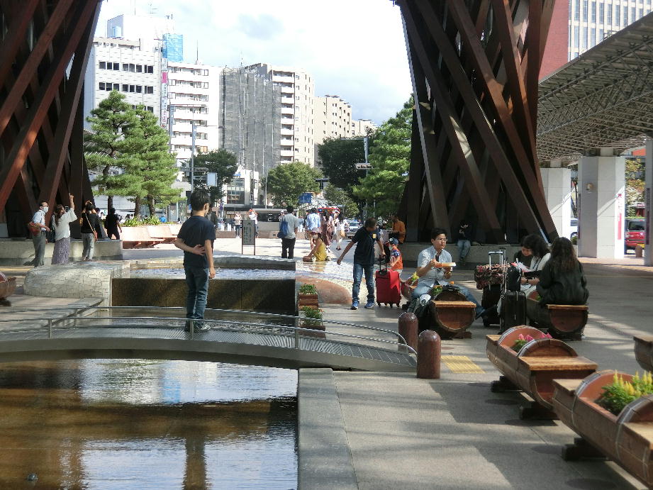 金沢に着いたらこんな特急がいました。完全予約制で電車の中では切符を買えない。みどりの窓口に買いに行ったら満席でした。私には縁が無かったのでしょう?で、次の電車まで時間が30分あったので、金沢駅の外に出てみました。