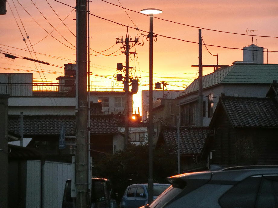 日本海に面しているので夕焼けがきれい。駅前からの景色。
