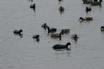 霞ケ浦の鴨とオオバン(黒い方の鳥)、なぜ二種類の鳥が共存出来るのだろう?人間もそうあって欲しい。