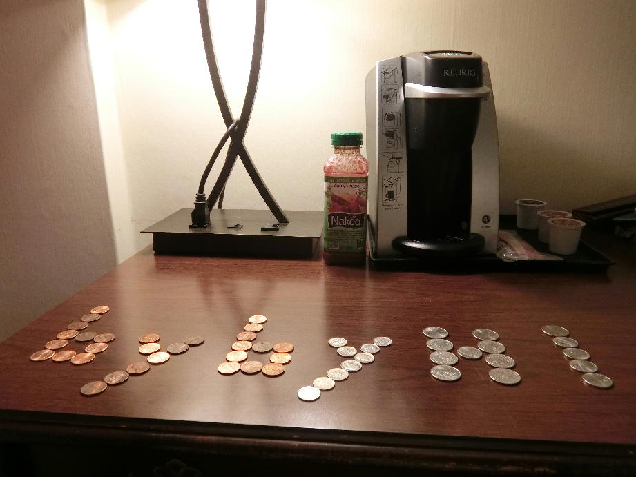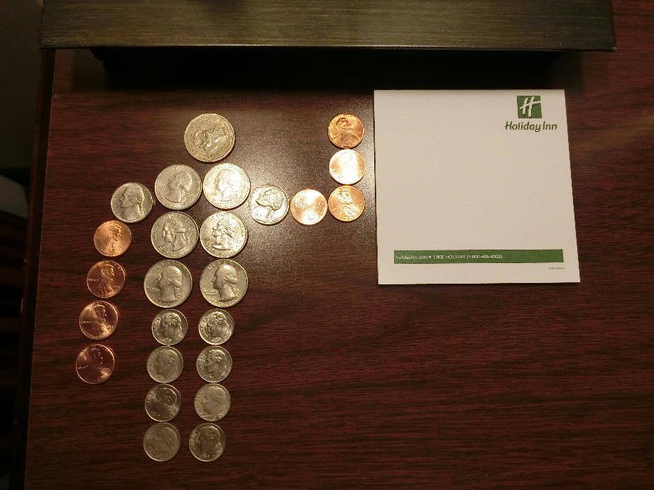 溜まっていた小銭の使い方を見つけた。部屋に残すチップをこのようにした。