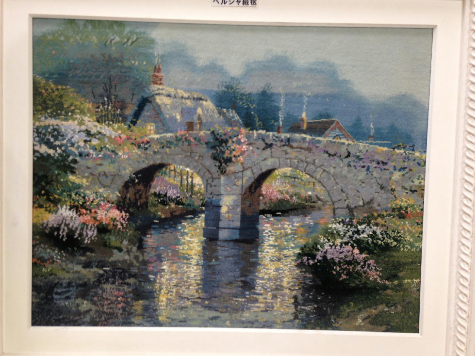 川が光って見えるようにしているは絹糸を使っているとのこと。1年かかって作ったらしいのだけれど、仕上がった時に作った人はどういう感想を持ったのだろう?何百種類という色の糸から選んで一本一本織り込んでいったという。油絵より暖かさが出ているよね。これを織り上げた人に会ってみたいね。