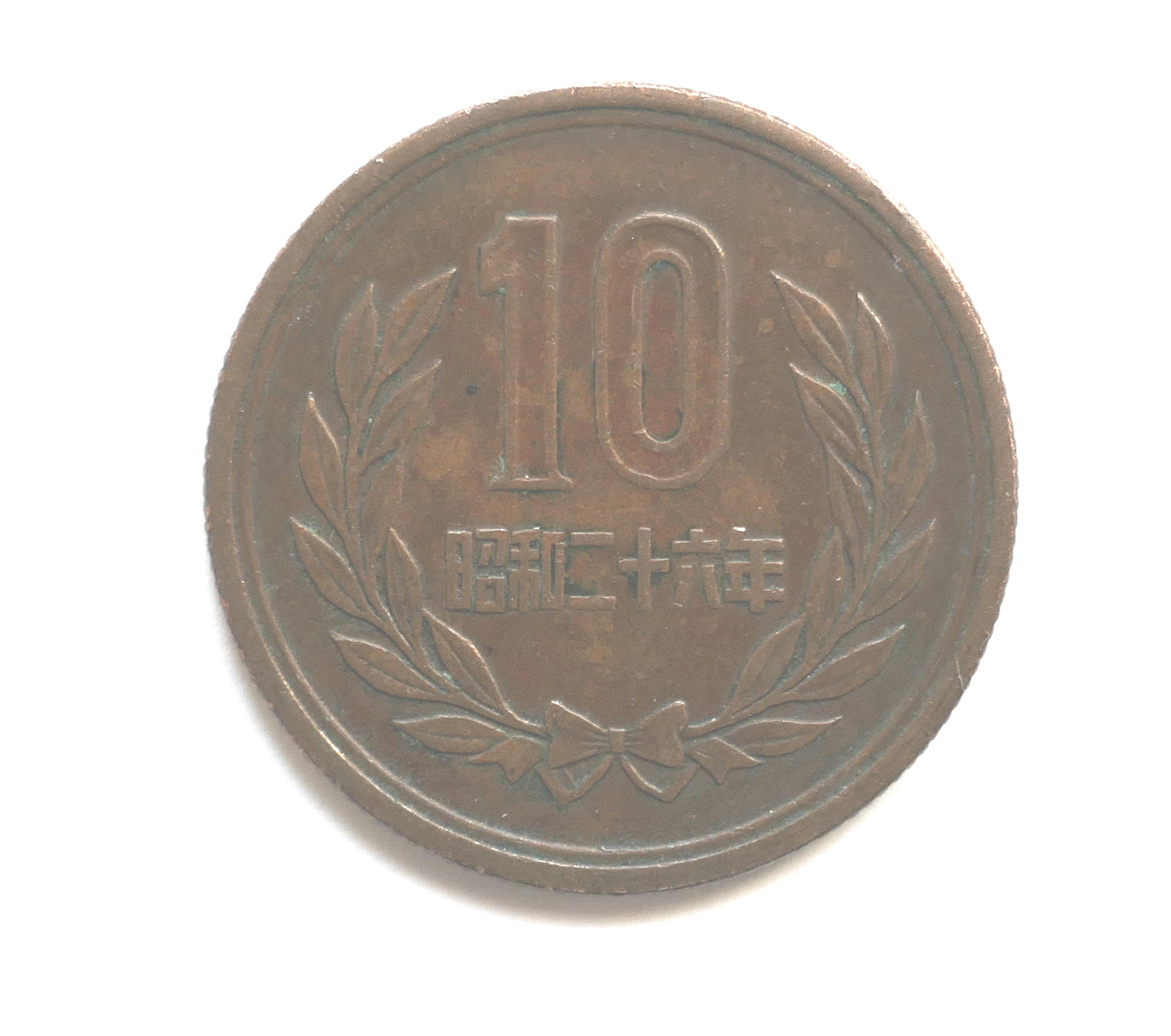 あれ?珍しいな、エッジにギザギザがある10円玉。見たら昭和26年と刻印されていた。