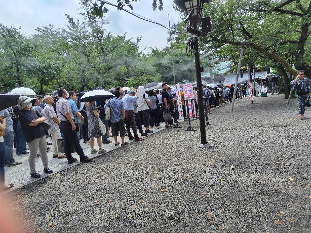 参拝を整然と待っている列。