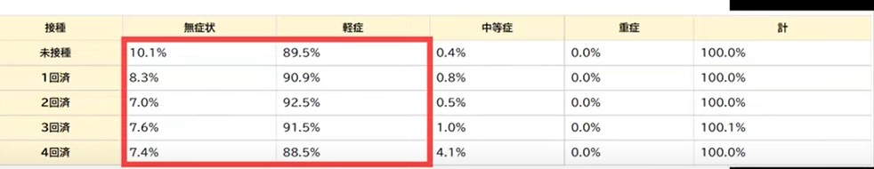 Wチンを打っていない人の方が無症状と軽症が多い?感染すればWチンを打っている人の方がより症状が重くなる?というデータになりますね。