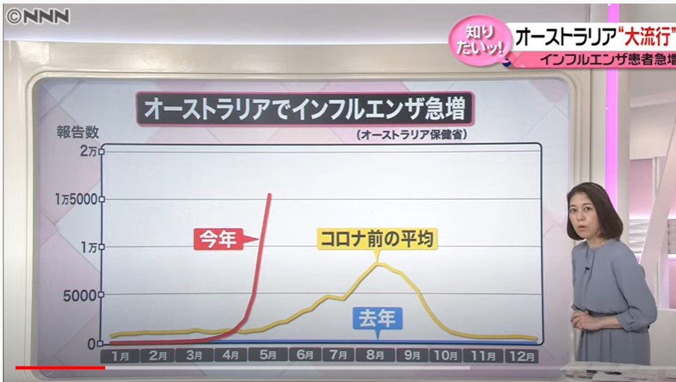 オミクロンはインフルエンザより弱い弱毒性になっているので、これからそれより強いインフルエンザが表に出て来る。オーストラリアは今、冬なのでインフルエンザが急拡大しているようだ。