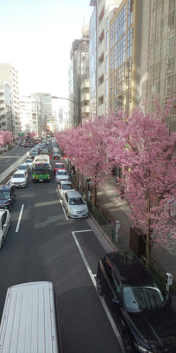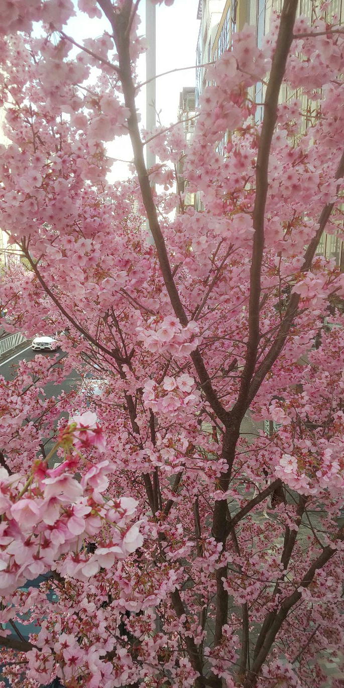 今日、渋谷に行って来ました。一瞬、人工の桜花を張り付けているのかと錯覚しました。鮮やかなピンクです。何の桜だろう?今日が一番良い日だったかな?