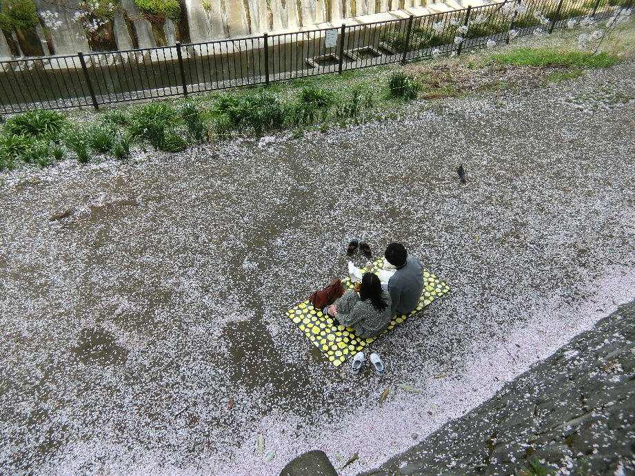 今日は早くも夏日?そして桜最終日の板橋・石神井川沿い、桜の蜜を吸いに来ている小鳥が多かった。若いカップルもね?