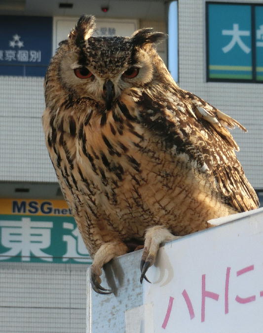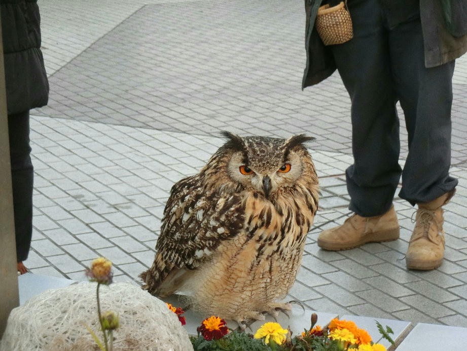 昨日の朝、ネットニュースで戸塚駅でフクロウやミミズクの猛禽類を使ったムクドリ、鳩対策をやっているというので夕方行って見て来ました。